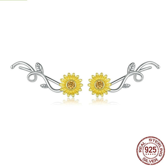 S925 Silver Small Daisy Earrings Light And Luxurious Niche Design