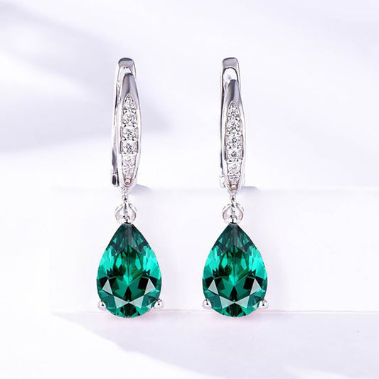 Women's Droplet Gemstone Sterling Silver Platinum Plated Earrings